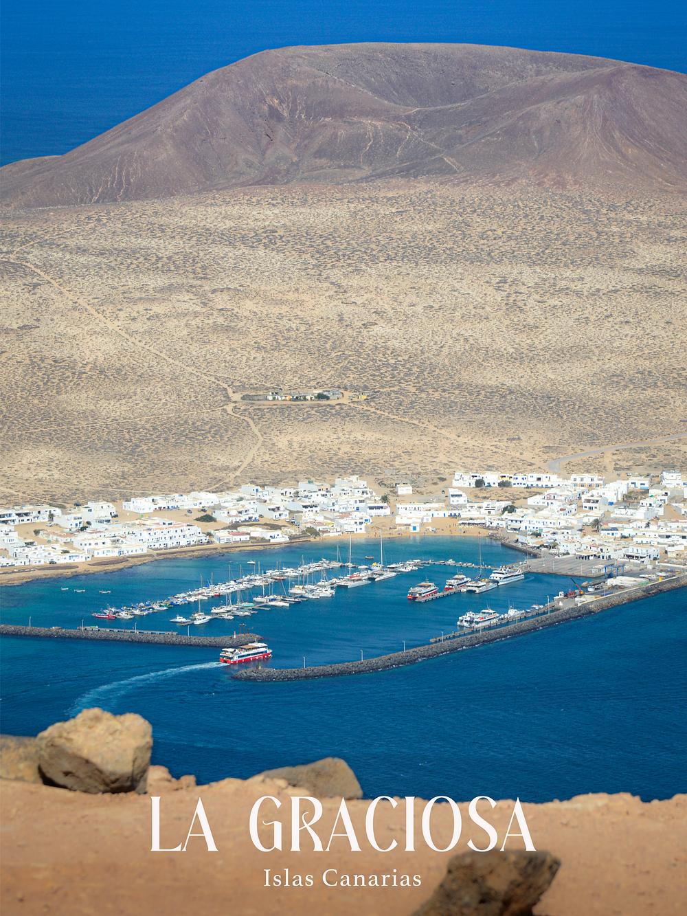 La Graciosa's Port and Volcano, Canary Islands.