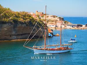 Sailboat on the blue waters of the Mediterranean Sea.